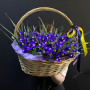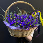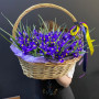 101 синий ирис в плетенной корзине в Наро-Фоминске