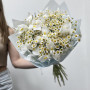 На фото букет из белых ирисов и ромашек. В составе: ирис 25 шт, танацетум 6 шт, дизайнерская упаковка 1 шт, атласная лента 1 шт, . Все цветы свежие и ароматные, букет красиво оформлен и отлично подходит для подарка. Доступна доставка цветов или самовывоз.