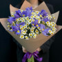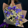 Букет из белых хризантем и синих ирисов
