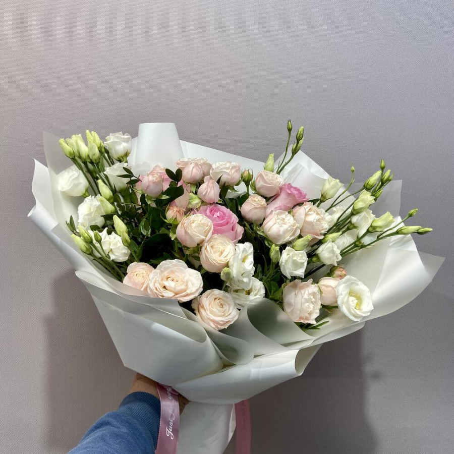 Букет из пионовидных роз и белых эустом в Наро-Фоминске
