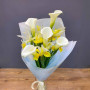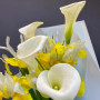 Букет из желтых ирисов и беллых калл в Наро-Фоминске