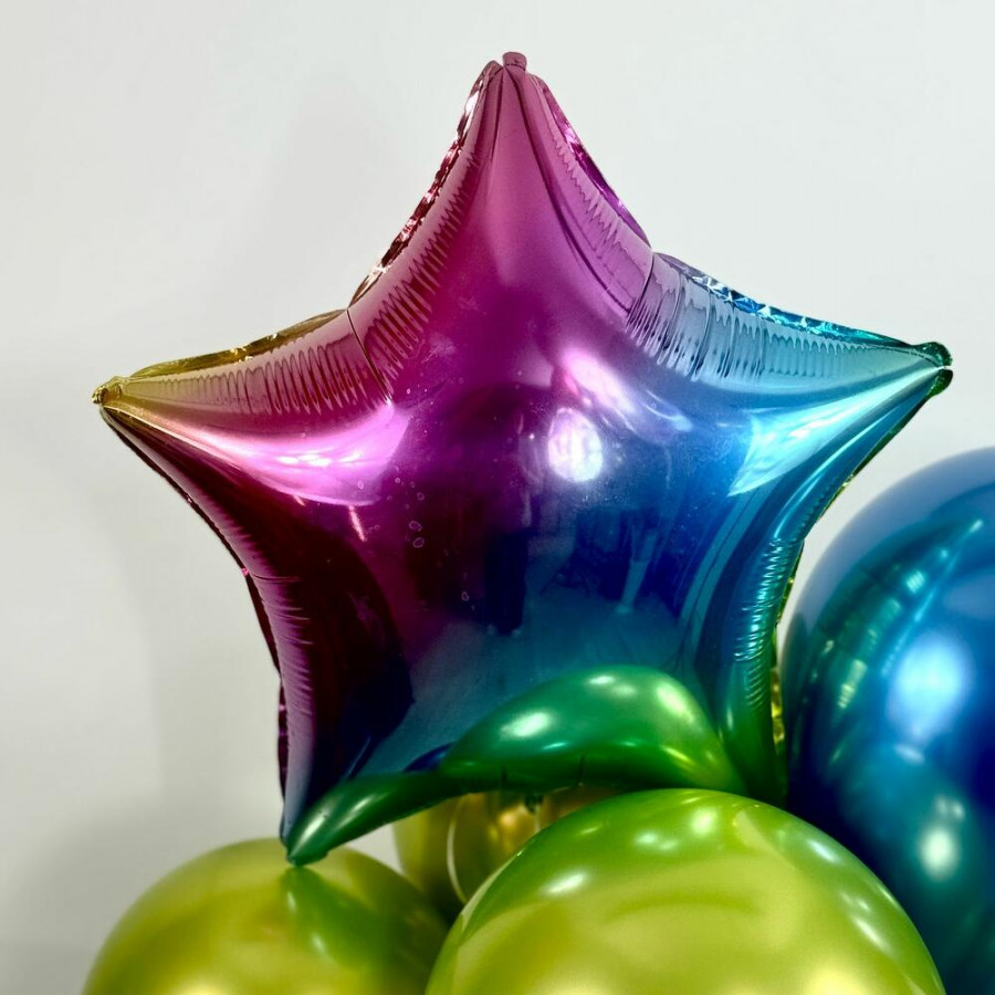 Шар Фольгированный «Звездочка» - 1 Шар латексный синий - 3 Шар латексный зеленый -5